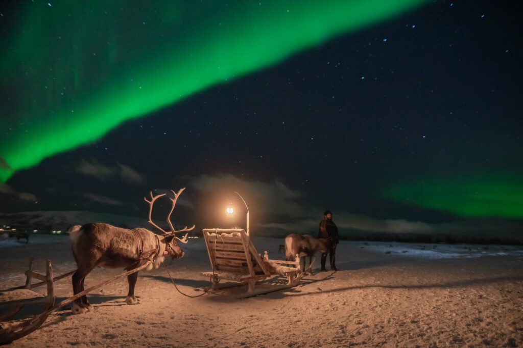 December is also an excellent month for cultural experiences, especially reindeer and Sámi tours. Guests can visit Sámi camps, learn about Indigenous traditions, feed reindeer, and even try reindeer sledding.